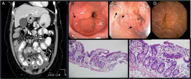 Hình 4. Viêm dạ dày ruột tăng BCAT được đánh giá đầy đủ về nội soi, MRI và phân tích mô bệnh học