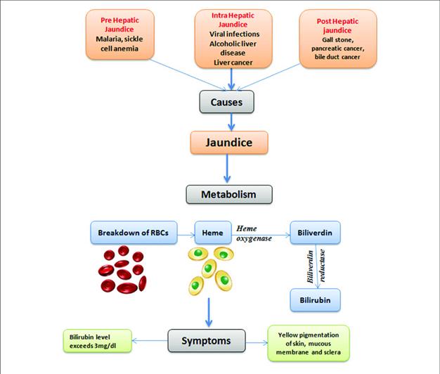 Hình 2. Nguyên nhân gây vàng da và chuyển hóa bilirubine | Nguồn: researchgate.net