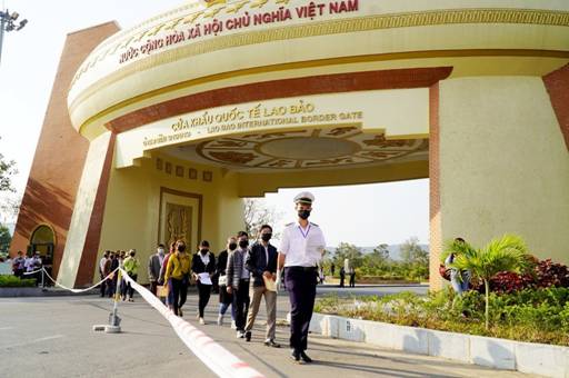 Cửa khẩu quốc tế Lao bảo nơi có đông người và phương tiện qua lại biên giới