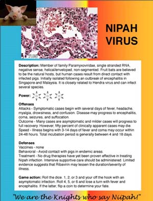 Giáo sư Anne Moscona cho biết “Chloroquine tạo ra một cơ hội tốt trong việc đưa nó thông qua tiến trình phát triển đúng lúc để ngăn chặn những dịch bệnh trong tương lai của căn bệnh lây nhiễm chết người này”. Giống như cúm gia cầm, SARS và những virus gây bệnh Ebola; Hendra và Nipah là mầm bệnh được truyền từ động vật, cụ thể là thú. Điều này có nghĩa là chúng vốn có nguồn gốc từ một loài thú nào đó nhưng có thể di chuyển giữa những loài thú và giữa thú với người. Hiện tại không có loại vaccine hay biện pháp chữa trị hiệu quả nào chống lại hai loại henipavirus này, vốn được chính phủ Mỹ đưa vào danh sách có nguy cơ là những tác nhân khủng bố sinh học (ảnh bên là sự phân bố dịch bệnh dohenipavirus gây ra)
