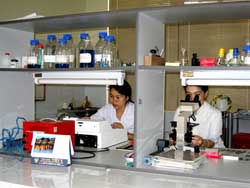 Các kỹ thuật viên thực hiện các kỹ thuật nghiên cứu kháng thuốc tại labo nuôi cấy của Viện sốt rét KST - CT Quy Nhơn. |