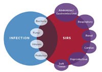 Hội chứng đáp ứng viêm toàn thân là các dấu hiệu lâm sàng tạo ra do kích hoạt toàn bộ hệ thống miễn dịch của cơ thể. Hội chứngSIRS  đôi khi bị nhầm lẫn với nhiễm trùng huyết, nhưng có một sự khác biệt quan trọng giữa hai loại này là sự hiện diện của nhiễm trùng. Hội chứng đáp ứng viêm toàn thân có thể xảy ra sau chấn thương, viêm, thiếu máu cục bộ hoặc nhiễm trùng, trong khi nhiễm trùng huyết chỉ xảy ra với sự hiện diện của nhiễm trùng. SIRS không phải lúc nào cũng xảy ra sau những chấn thương của cơ thể, nhưng nó thường là một biến chứng tiềm năng. Khi có sự hiện diện của nhiễm trùng, SIRS có thể phát triển thành nhiễm trùng huyết nếu không được chữa trị một cách nhanh chóng và thích hợp.