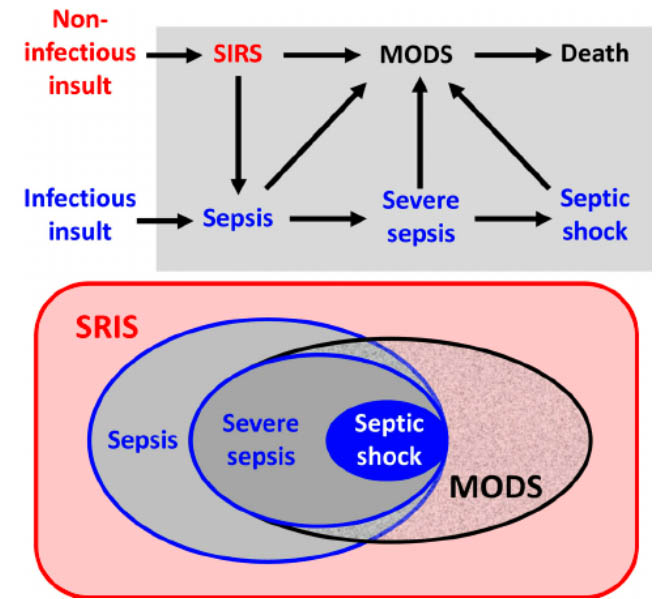 1.Bone RC, Balk RA, Cerra FB, Dellinger RP, Fein AM, Knaus WA, Schein RM, Sibbald WJ. Definitions for sepsis and organ failure and guidelines for the use of innovative therapies in sepsis. The ACCP/SCCM Consensus Conference Committee. American College of Chest Physicians/Society of Critical Care Medicine. Chest. 1992 Jun;101(6):1644-55.