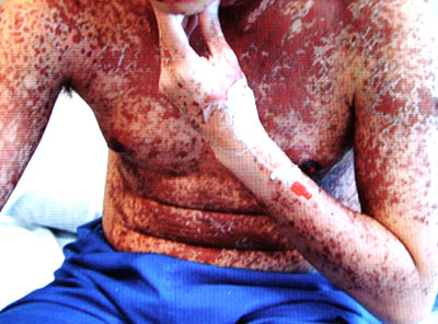| Hội chứng Stevens-Johnson do dị ứng trầm trọng với thuốc điều trị (ảnh internet minh họa) |
