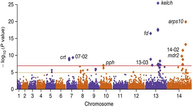 Đến nay, nghiên cứu lớn nhất về bọ gen (genome-wide association study_GWAS) của ký sinh trùng sốt rét Plasmodium falciparum (P. falciparum) đã công bố và bổ sung cho cấu trúc di truyền phức tạp, cho phép các ký sinh trùng sốt rét (KSTSR) có thể phát triển khả năng đề kháng với thuốc chống sốt rét hiệu quả nhất, đó là artemisinin. Kết quả cho thấy có thể giúp cải thiện việc phát hiện sớm sự nổi lên củakháng artemisinin.