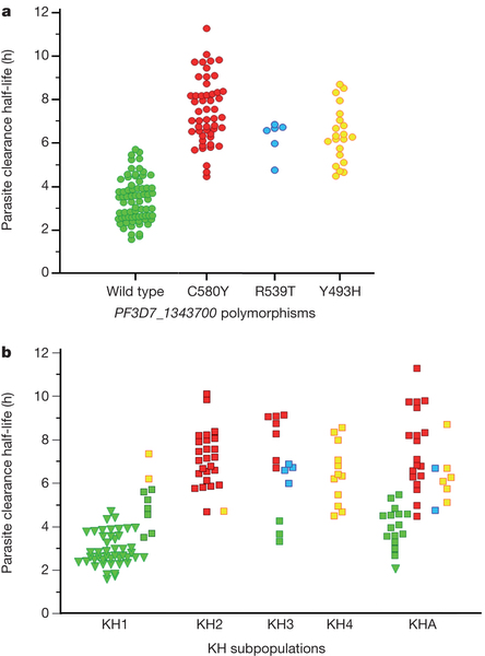 Đáng chú ý là ký sinh trùng sốt rét dọc theo biên giới Thái Lan-Myanmar dường như xuất hiện đột biến một cách riêng biệt so với những người đột biến xuất hiện ở Campuchia và Việt Nam. Điều quan trọng, quần thể ký sinh trùng trong cả hai khu vực có chung những đột biến di truyền cơ bản, mặc dù chúng cách ly về mặt di truyền một cách rõ ràng