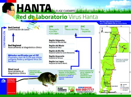 Một xét nghiệm ELISA được thực hiện bởi khoa y tế công cộng và môi trường của Colorado cho thấy Sin Nombre hantavirus--specific serum IgM. Một đánh giá khác liên quan đến môi trường tiến hành tại nhà của đứa bé ở Colorado cho thấy trong phân và nơi trú của các loài gặm nhấm bên dưới của giường đứa trẻ nằm và trước nhà nơi mà trẻ chơi cũng có.