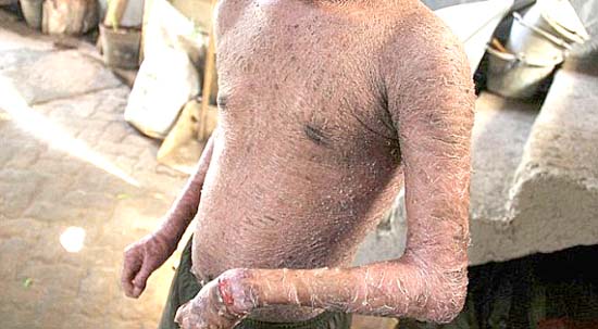 Hiện tượng lột da chỉ xuất hiện ở một số loài vật, nhất là bò sát, nhưng ở Indonesia hiện nay lại có cậu bé mắc phải căn bệnh lạ này với làn da sần sùi như vẩy rắn.