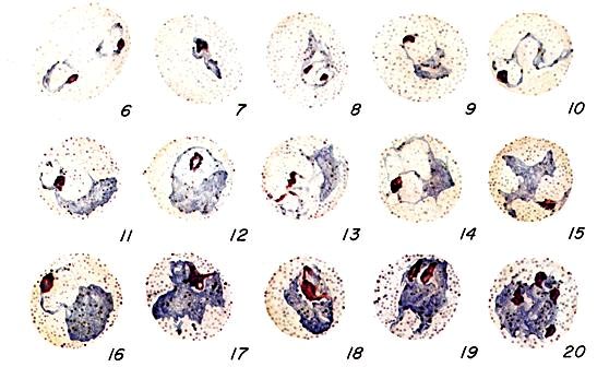 - Các thể phân liệt schizont có từ 2 nhân trở lên (thì tuổi từ 38 – 48 giờ)