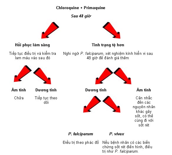 Chloroquine 25 mg base/kg chia ra làm 3 ngày, phối hợp thuốc primaquine 0.25 mg base/kg, uống thuốc sau ăn một lần mỗi ngày trong 14 ngày là lựa chọn điều trị tối ưu cho các trường hợp nhiễm trùng P. vivax còn nhạy với CQ. Tại Oceania và Đông Nam Á, liều thuốc primaquine nên dùng 0.5 mg/kg. Lẽ đương nhiên bản liều dùng thuốc này không phù hợp với liệu trình và chỉ định dùng thuốc theo hướng dẫn chẩn đoán và điều trị sốt rét tại Việt Nam mới nhất (2009)