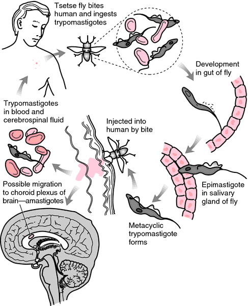 30.Quinn TC. African trypanosomiasis (sleeping sickness). In: Goldman L, Ausiello D, eds. Cecil Medicine. 23rd ed. Philadelphia, Pa: Saunders Elsevier; 2007: chap 367