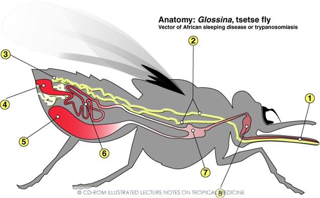 -Một vết đốt từ các con ruồi loại “tsetse” gây nên bệnh lý ký sinh trùng này;