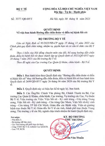 - Bệnh nhân sốt rét uống primaquin phosphate (PQ) ngay từ ngày đầu tiên, sau khi ăn no; - Không dùng PQ cho trẻ em dưới 6 tháng tuổi và phụ nữ có thai, phụ nữ trong thời kỳ cho con bú dưới 6 tháng tuổi, người có bệnh gan; - Nếu không có điều kiện xét nghiệm G6PD, thì cần theo dõi biến động khối lượng hồng cầu, màu sắc da và màu sắc nước tiểu (nước tiểu chuyển màu sẫm như nước vối hoặc màu nước cà phê đen) để dừng thuốc kịp thời. - Với người bệnh thiếu G6PD nhiễm P. vivax hoặc P. ovale liều dùng khuyến cáo PQ là: 0,75mg base/kg trong 1 tuần x 8 tuần. Người bệnh phải được theo dõi chặt chẽ trong suốt quá trình điều trị tại cơ sở y tế có truyền máu; - Uống thuốc PQ sau khi ăn no. | - Primaquin nên được uống ngay từ ngày đầu tiên, sau khi ăn - Không dùng primaquin cho trẻ em dưới 6 tháng tuổi, phụ nữ có thai, phụ nữ cho con bú (con dưới 6 tháng tuổi). a) Nếu có kết quả xét nghiệm G6PD - Thiếu G6PD hoặc hoạt độ G6PD < 30% hoạt độ G6PD ở người bình thường dùng liều PQ:0,75mg/kg/lần/ tuần x 8 tuần; - Bán thiếu G6PD (hoạt độ G6PD từ 30 - 70% hoạt độ G6PD ở người bình thường), liều dùng PQ: 0,25 mg/kg/ngày x 14 ngày; - Không thiếu G6PD: Liều PQ 0,5 mg/kg/ngày x 7 ngày. b) Nếu không có xét nghiệm G6PD: Liều PQ 0,25mg/kg/ngày x 14 ngày - Cần tư vấn cho người bệnh biết cách nhận biết các triệu chứng và dấu hiệu của tan máu cấp khi dùng primaquin (sốt, nước tiểu màu đỏ sẫm hoặc đen, vàng da, vàng mắt, đau lưng, chóng mặt, khó thở…); - Nếu có bất kỳ triệu chứng nào cần dừng uống ngay PQ và đến ngay cơ sở y tế có khả năng truyền máu; - Người bệnh thiếu G6PD và bán thiếu G6PD cần phải được theo dõi chặt chẽ khi dùng PQ. * Chú ý: - Không dùng PQ cho trẻ em dưới 6 tháng tuổi, phụ nữ có thai và phụ nữ trong thời kỳ cho con bú (con dưới 6 tháng tuổi), người có bệnh gan. Nếu không có điều kiện xét nghiệm G6PD, thì cần theo dõi biến động lượng hồng cầu, màu sắc da và màu sắc nước tiểu (nước tiểu chuyển màu sẫm như nước vối hoặc màu nước cà phê đen) để dừng thuốc kịp thời. - Uống primaquin sau khi ăn. - Tafenoquine không dùng cho trẻ em dưới 2 tuổi hoặc có cân nặng dưới 5 kg, người thiếu/bán thiếu G6PD, phụ nữ có thai, phụ nữ cho con bú. |