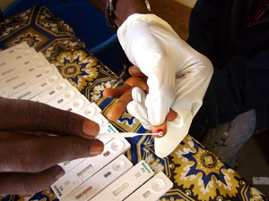 Test chẩn đoán nhanh sốt rét (Rapid Diagnostic Test – RDTs) dùng để phát hiện sớm kháng nguyên ký sinh trùng sốt rét nguồn ảnh: www.msf.org.uk/malaria_day_2008 |