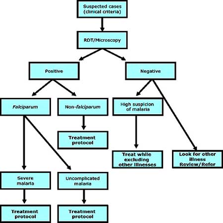 Gần đây sự ra đời các chế phẩm thuốc phối hợp ACTs rất hiệu quả trong điều trị, nhưng đắt tiền đã được dùng phổ biến khắp châu Phi, cho nên bắt buộc phải đạt độ chính xác cao trong phát hiện và chẩn đoán. Việc sử dụng các test chẩn đoán nhanh dựa vào kháng nguyên cài đặt sẵn được xem là một cách tiếp cận có hiệu quả làm giảm tình trạng điều trị sốt rét quá rộng rãi như hiện nay. Phương pháp chẩn đoán sốt rét rộng rãi và phổ biến nhất để xác định là kính hiển vi-theo thông tin đăng tải từ các tạp chí. Davidson H. Hamer (Đại học y tế công cộng, Boston) và cộng sự tại Bộ Y tế, Viện Nghiên cứu y học Kenya và Đại học Oxford, đã làm điều tra đánh giá mối liên quan giữa sử dụng kính hiển vi/ RDTs trong chẩn đoán sốt rét với việc kê đơn dùng thuốc sốt rét ở Zambia. Các nhà nghiên cứu tiến hành một nghiên cứu từ tháng 3-5 năm 2006, gồm 104 đơn vị y tế của 4 quận ở Zambia. Dữ liệu được thu thập đầy đủ, một bộ thiết bị điều tra cho biết 17% trong tổng số 104 cơ sở y tế có sử dụng kính hiển vi, 63% sử dụng test RDTs. Toàn bộ 73% cơ sở y tế có ít nhất một phương tiện chẩn đoán sốt rét. Trong tổng số 1.717 bệnh nhân (tất cả nhóm tuổi) có sốt (nghi ngờ sốt rét), 27.8% được điều trị tại cơ sở y tế sau khi đã xét nghiệm sốt rét và 44.6% cho kết quả dương tính. Trong số các bệnh nhân âm tính với xét nghiệm lam máu thì có 58.4% được kê đơn thuốc sốt rét và 35.5% bệnh nhân có kết quả RDTs âm tính lại được điều trị bằng thuốc sốt rét. Hầu hết các bệnh nhân có sốt (72.6%) không có kỹ thuật chẩn đoán nào tiến hành. Thuốc sốt rét được kê đơn đến 66% trên các bệnh nhân này. Khoảng ½ trong số này nhận điều trị bằng thuốc artemether-lumefantrine (ACTs). Tại các kho thuốc của cơ sở y tế có [Artemether-lumefantrine], thuốc này đã được kê cho bệnh nhân với một số lượng rất lớn khi bệnh nhân có sốt và kết quả chẩn đoán dương tính, mà một số kết quả âm tính (lam máu 30.4%; RDTs 26.7%) (JAMA_ the Journal of the American Medical Association)