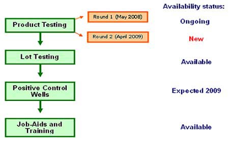 Vòng 2 năm 2009, thực hiện đánh giá 29 sản phẩm cũng đang được tiến hành bởi TDR, FIND và CDC, kết quả sẽ được ấn bản vào năm 2010. Chương trình nghiên cứu và đào tạo đặc biệt về bệnh nhiệt đới của TDR cũng đã khẩn trương tiến hành các cụoc đánh giá chất lượng cũng như hiệu quả test. Trong báo cáo kết quả vòng 1 (round 1), kiểm tra sản phẩm RDTs do WHO thực hiện, được hoàn chỉnh vào tháng 11.2008 cùng với các đối tác khác.