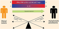 Hậu quả của sốt rét bị ảnh hưởng bởi cân bằng giữa các cytokine chống viêm và tiền viêm.