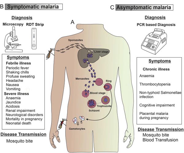 Hình 1. Sốt rét có triệu chứng, không triệu chứng và hậu quả trên sức khỏe | Nguồn: ACC, 2021