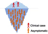 Suy diễn kinh điển tại vùng lan truyền thấp, tỷ lệ người nhiễm có triệu chứngthấp hơn ở vùng lan truyền cao vì mức độ miễn dịch quần thể giảm. Qua nghiên cứu gần đây cho biết việc dùng PCR khảo sát thấy tỷ lệ nhiễm không triệu chứng tại các vùng lan truyền khác nhau, chỉ có các nghiên cứu tính toán tỷ lệ nhiễm các loài KSTSR dựa trên thiết kế điều tra cắt ngang dựa vào quần thể, mặc dù các triệu chứng và giai đoạn thời gian tham chiếu định nghĩa NMTKTC khác nhau giữa các nghiên cứu. Dữ liệu cho thấy gia tăng tỷ lệ ổ chứa KSTSR không triệu chứng làm tăng lan truyền. Nghiên cứu phân tử cho tỷ lệ NMTKTC cao, nhưng cũng đồng thời xác định người mang KSTSR phát hiện trên KHV cũng chỉ có 80% số ca có biểu hiện triệu chứng mà thôi.