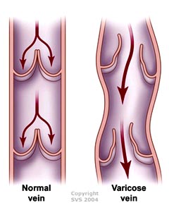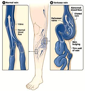 Là tình trạng suy các van tĩnh mạch do rối loạn điều hòa giữa hệ tĩnh mạch nông và tĩnh mạch sâu ở chân. Hệ thống van tĩnh mạch có tác dụng giữ máu không tụt trở lại, hệ sâu khó giãn, hệ nông van yếu, tổ chức liên kết yếu nên dễ giãn. Bệnh nhân đứng thấy tĩnh mạch nổi rõ. Có những mao mạch nổi ở dưới da. Có thể thấy tĩnh mạch ngoằn ngoèo từng búi. Có thể to hai chân hoặc một bên to, bên kia nhỏ hơn. Giai đoạn mất bù có đau dữ dội, da rất ngứa, có biến chứng loét da ở chân, rất khó điều trị.