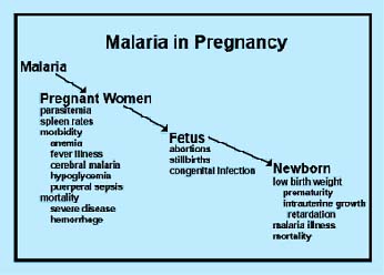 Sốt rét trong quá trình mang thai là mối nguy hay phản ứng có hại cho cả người mẹ và thai nhi, bao gồm thiếu máu thai sản, chết thai, sinh non, chậm phát triển trong tử cung và trẻ sinh ra có cân nặng thấp (< 2500 g hoặc < 5.5 pounds). Đây là một vấn đề đặc biệt cho phụ nữ có thai 3 tháng đầu và 3 tháng giữa và đặc biệt hơn trên phụ nữ mang thai mắc sốt rét trên cơ địa bệnh nền có HIV dương tính. Bệnh sốt rét đe dọa ít nhất 24 triệu phụ nữ mang thai (PNMT) mỗi năm tại châu Phi-một lục địa chịu tác động nặng nề nhất về sốt rét và một căn bệnh truyền nhiẽm khác, kể cả đại dịch AIDS so với các vùng khác trên thế giới (theo thông tin từ WHO, 2005). Sốt rét gây thiếu máu và dẫn đến sinh non, sẩy thai và giảm cân nặng của trẻ sơ sinh. Theo tổng hợp từ Ngân hàng thế giới (WB_World Bank), hơn 1 triệu người chết mỗi năm vì sốt rét, hầu hết là trẻ em nên việc bảo vệ quần thể có nguy cơ bị sốt rét là tập trung vào nổ lực của toàn cầu để đẩy lùi sốt rét ("Roll back malaria”). Trong khi sử dụng những thuốc đặc hiệu và dùng màn tẩm hóa chất bảo vệ đã khiến giảm đáng kể số ca sốt rét ở các quốc gia châu Phi và các nổ lực liên tục cũng như nhân rộng cần thiết phải phát huy, tập trung vào bảo vệ cho các nhóm đối tượng nguy cơ nhất là phụ nữ mang thai (PNMT) và trẻ em.