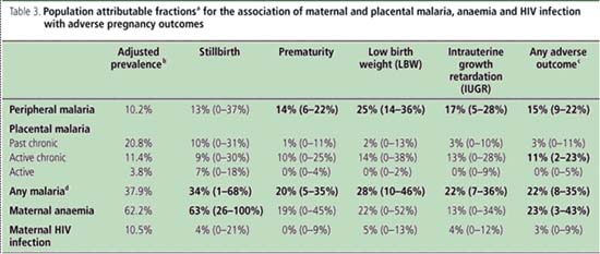 §Trong các vùng sốt rét lan truyền từ mức độ vừa đến cao (high and moderate (stable) malaria transmission), hầu hết các phụ nữ trưởng thành phát triển không đầy đủ về mức độ miễn, ngay cả trong thời gian mang thai. Nhiễm sốt rét do P. falciparum không phải luôn luôn dẫn đến triệu chứng sốt hoặc các triệu chứng lâm sàng khác. Trên các vùng này, thì tác động chính của mắc sốt rét liên quan đến thiếu máu do sốt rét ở người mẹ và với sự có mặt của ký sinh trùng trong nhau thai. Hậu quả liên đới đến suy dưỡng thai nhi khiến cho trẻ sinh ra có trọng lượng thấp, dẫn đến nhiều hậu quả bắt cầu sau này. Tại các vùng lan truyền sốt rét ổn định ở châu Phi, nhiễm P. falciparum trong thời gian mang thai ước tính gây ra khoảng 10.000 cái chết ở mẹ mỗi năm và 8-14% trong số đó có cân nặng trẻ sinh ra thấp và 3-8% tử vong.