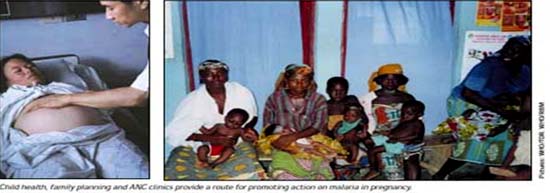 Khoảng 2/3 phụ nữ mang thai tại vùng sa mạc Sahara, châu Phi tham dự vào dịch vụ chăm sóc trước sinh ít nhất một lần trong suốt quá trình mang thai, đây là cơ hội chính để phòng bệnh sốt rét tốt nhất. Mục đích là để phân phối và triển khai các dịch vụ chăm sóc đến các phụ nữ mang thai như một phần nhiệm vụ trong chăm sóc trước sinh, cũng như sử dụng các trang thiết bị tại cơ sở có hiệu quả và đẩy mạnh những tồn tại cơ sở hạ tầng ở đó. Chiến lược này giờ đây như một phần lồng ghép của chương trình “Making Pregnancy Safer” của WHO, nhằm đẩy mạnh các dịch vụ chăm sóc trước sinh và cung cấp các biện phá dự phòng, điều trị và tư vấn để nâng cao tất cả khía cạnh y tế trên phụ nữ mang thai và trẻ sơ sinh.