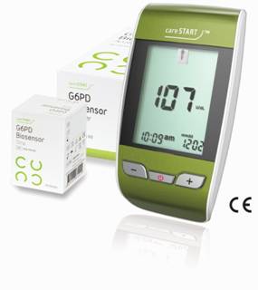 Hiện nay, có ít nhất hai loại bộ test định lượng G6PD dựa vào đặc tính kỹ thuật là cảm biến sinh học (biosenssor) áp dụng thuận tiện điều kiện thực địa từ hai hãng thương mại của Mỹ:
