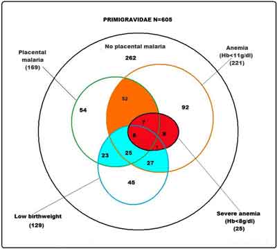 86 phụ nữ mang thai sau khi sinh được ghi nhận trong các hồ sơ bệnh án và các đứa trẻ sơ sinh được chẩn đoán mắc bệnh SRBS, tất cả có ít nhất một bộ hồ sơ. Trong đó có 5 trường hợp bệnh SR xảy ra trong thời kỳ mang thai ba tháng đầu, 20 trường hợp mắc bệnh sốt rét trong 3 tháng giữa và 17 trường hợp mắc bệnh sốt rét trong 3 tháng cuối. Tổng số 46 trường hợp mắc khi mang thai và 4 trường hợp không xác định. 8 phụ nữ được ghi nhận mắc SR trước khi mang thai (5 trường hợp chỉ xảy ra trước khi mang thai) và 3 phụ nữ không được ghi lại tiền sử mắc SR.