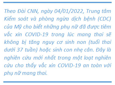 Theo CDC Hoa Kỳ, tính đến cuối năm 2021, hơn 40% phụ nữ có thai tại Hoa Kỳ đã được tiêm vắc-xin