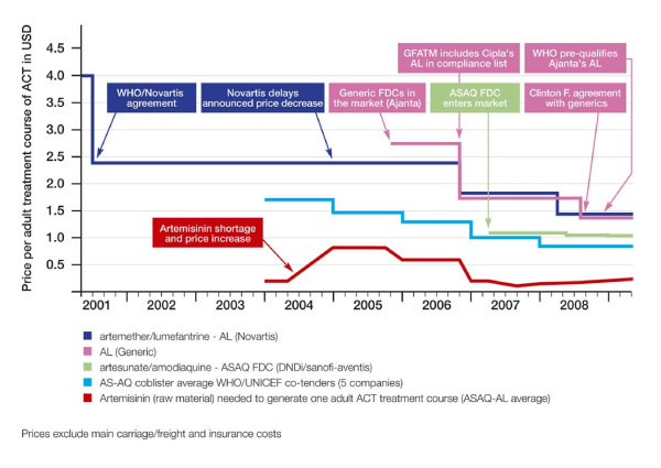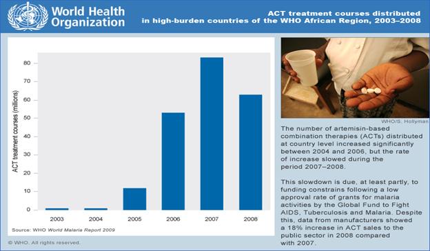 Chủ động nâng cao chất lượng điều trị ca bệnh sốt rét cấp tính thông qua chẩn đoán nhanh, điều trị liệu trình thuốc phối hợp ACTs đầy đủ và triển khai rộng rãi các biện pháp phòng ngừa can thiệp như thuốc tồn lưu diệt côn trùng, xử lý bằng lưới ngăn muỗi hoặc phun tồn lưu trong nhà (IRS). ACTs đã đóng một vai trò quan trọng trong việc làm giảm bệnh sốt rét ở nhiều quốc gia, song các đóng góp chính xác của loại thuốc này đã không được hiểu đầy đủ. Việc giảm sốt rét được cho là ảnh hưởng tổng hợp của ACTs, phun tồn lưu trong nhà và lưới ngăn côn trùng. Sự đóng góp chính xác của thuốc phối hợp ACTs trong quá trình này là khó để đánh giá do việc sử dụng nhiều biện pháp can thiệp. Tuy nhiên, nếu ca bệnh sốt rét được phát hiện sớm bằng một xét nghiệm chẩn đoán nhanh (RDTs) và điều trị bằng thuốc phối hợp ACTs được mở rộng tới cộng đồng địa phương, ca bệnh P. falciparum có thể giảm 34% và nhập viện do sốt rét giảm 39%. Trong khi tỷ lệ phun tồn lưu trong nhà và ngủ màn vẫn không thay đổi, giảm sốt rét rất có thể do được phát hiện và chẩn đoán sớm và sử dụng thuốc ACTs điều trị.