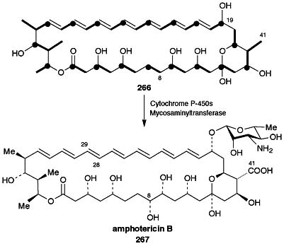 là một loại kháng sinh polyene sinh ra bởi một dòng Streptomyces nodosus; có chứng năng kìm nấm (fungistatic) hoặc diệt nấm (fungicidal). Gắn kết với gốc sterols (chẳng hạn, ergosterol) trong màng tế bào nấm, gây cho tình trạng các thành phần nội bào phá hủy dẫn đến các “lỗ thủng” rồi gây chết tế bào nấm.