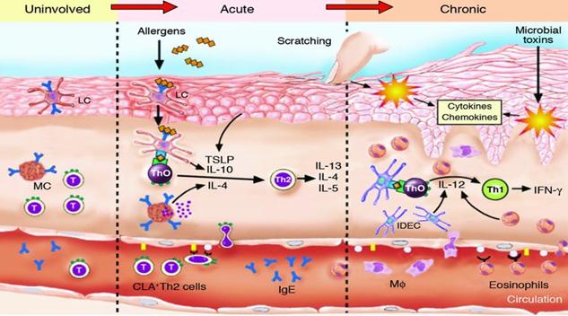 2.De Benedetto, A; Agnihothri, R; McGirt, LY; Bankova, LG; Beck, LA (2009). "Atopic dermatitis: a disease caused by innate immune defects?". The Journal of investigative dermatology 129 (1): 14–30.