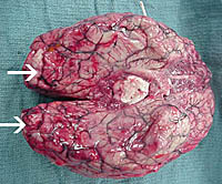 Trên các cá nhân biểu hiện GAE, các thương tổn tại chỗ rất phổ biến và có thể nhìn thấy khắp hệ thần kinh trung ương.