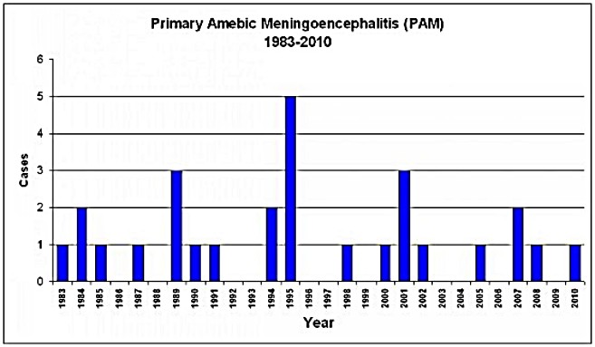 307.Yoder JS, Eddy BA, Visvesvara GS, Capewell L, Beach MJ. The epidemiology of primary amoebic meningoencephalitis in the USA, 1962-2008.http://www.cdc.gov/Other/disclaimer.htmlhttp://www.cdc.gov/Other/disclaimer.html Epidemiol Infect. 2010;138:968-75.