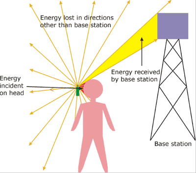 Điện thoại di động phát tần số vô tuyến thấp, hoạt động ở tần số từ 450 đến 2700 MHz với công suất cao nhất trong khoảng 0,1 đến 2 watt. Điện thoại di động chỉ truyền năng lượng khi nó được bật. Tần suất (do đó tiếp xúc tần số vô tuyến đến người sử dụng) giảm nhanh với sự gia tăng khoảng cách từ thiết bị cầm tay. Một người sử dụng điện thoại di động ở khoảng cách xa cơ thể từ 30-40 cm - ví dụ như khi nhắn tin, truy cập Internet, hoặc sử dụng một thiết bị không cầm tay - do đó sẽ tiếp xúc tần số vô tuyến thấp hơn nhiều so với những người cầm máy thu phát cầm tay