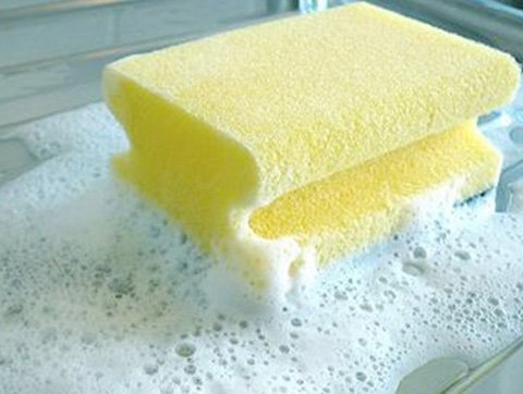 Bây giờ là vật đứng đầu về … độ bẩn. Miếng “bọt biển” (thực chất là chất dẻo xốp) dùng để rửa bát đĩa trong nhà. Những lỗ trống, những khe hở trên miếng bọt biển là nơi trốn tránh của những kẻ gây rối khỏi chất sát trùng, chống lại sự lôi kéo các chất bẩn bằng chất tẩy rửa. Vì vậy rất khỏ làm sạch một miếng bọt biển dùng rửa bát đĩa. Độ ẩm của nó còn tạo điều kiện cho vi khuẩn sinh sôi, làm nó vốn đã bẩn càng thêm bẩn.