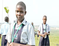 Một đại biểu trẻ tuổi trồng một cây con vào cuối Hội nghị biến đổi khí hậu của thiếu nhi Quốc tế, Kampala, Uganda, ngày 12/7/2014 |