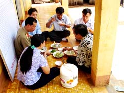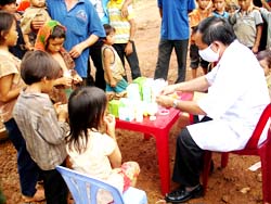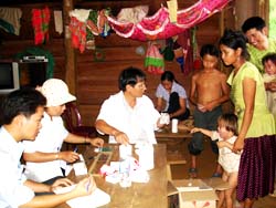 Đoàn công tác của Viện Sốt rét-KST-CT Quy Nhơn Đak Ngo, | đang lấy lam máu và phát thuốc cho nhân dân tại xã huyện Tuy Đức, tỉnh Đak Nong |