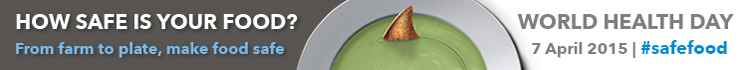 "An toàn thực phẩm: từ trang trại đến đĩa thức ăn, hãy làm cho thực phẩm an toàn" là chủ đề của Ngày Sức khỏe Thế giới năm 2015 tập trung vào việc chứng minh tầm quan trọng của an toàn thực phẩm dọc theo toàn bộ chiều dài của chuỗi thức ăn trong một thế giới toàn cầu hóa, từ sản xuất, vận chuyển, đến chế biến và tiêu thụ.Hơn nửa thế kỷ qua, quá trình mà thực phẩm lấy từ trang trại đến đĩa thức ăn đã thay đổi mạnh. Ô nhiễm thực phẩm xảy ra ở nơi này có thể ảnh hưởng đến sức khỏe của người tiêu dùng sống ở phía bên kia của hành tinh, điều này có nghĩa rằng tất cả mọi người cùng với dây chuyền sản xuất, từ người sản xuất đến người tiêu dùng phải quan sát việc thực hành xử lý thực phẩm an toàn.