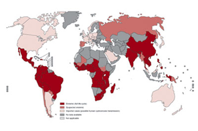 Trong nhiều thập kỷ, Mỹ Latinh đã có một vấn đề nghiêm trọng với bệnh giun sán và nang sán thần kinh. Bệnh lưu hành ở Nam và Đông Nam Á và đang nổi lên trong các nơi của vùng cận Saharan châu Phi, đặc biệt là ở khu vực nông thôn nơi có tập quán chăn nuôi lợn cho phép lợn tiếp xúc với phân người. Ở nhiều nước, một sự thiếu nhận thức và hiểu biết về tình trạng này có nghĩa là nó là một bệnh bị lãng quên.
