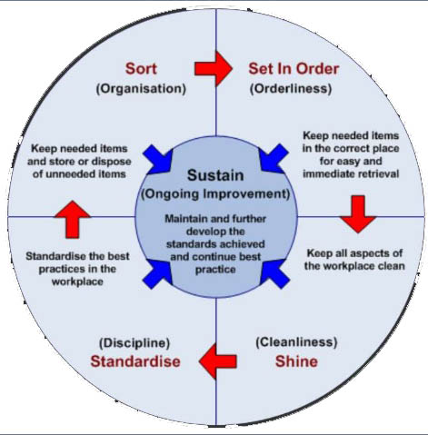 Thoạt tiên, 5S là một phương pháp quản lý nhà nhằm mục đích cải tiến môi trường làm việc, một chương trình hoạt động thường trực trong một doanh nghiệp hoặc ở một đơn vị hành chính. 5S là một phương pháp cải tiến rất đơn giản nhưng lại rất hiệu quả trong thực tế.