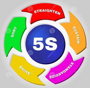 Do đó, bản chất của 5S là Một quá trình uốn nắn thói quen cho người lao động. 5S là chữ cái đầu của các từ tiếng Nhật Bản, gồm: “Seri”, “Seiton”, “Seiso”, Seiketsu” và “Shitsuke” và theo nghĩa tiếng Anh là: “Sort”, “Set in order”, “Standardize”, “Sustaint” và “Self-discipline”. Khi dịch sang tiếng Việt thì cũng tạo được 5 chữ S, đó là “Sàng lọc”, “Sắp xếp”, “Sạch sẽ”, “Săn sóc” và “Sẵn sàng”.