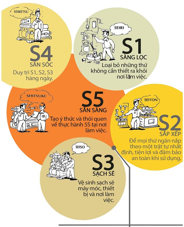 Làm rõ nghĩa về mô hình 5S (Sàng lọc - Sắp xếp - Sạch sẽ - Săn sóc - Sẵn sàng)
