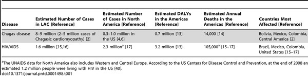 Hơn nữa, trong số các bệnh nhiệt đới bị lãng quên ở châu Mỹ, bệnh Chagas đứng hàng đầu về tử vong hàng năm và để lại di chứng sau nhiều năm. Riêng tại Mỹ có gần 1 triều trường hợp mắc bệnh Chagas, tập trung chủ yếu ở bang Texas và dọc theo bờ biển vùng Vịnh, cùng hàng nghìn ca ở Canada, Châu Âu, Australia và Nhật Bản. Điều này là do sự di cư của người dân Mỹ Latinh đến các vùng khác của thế giới.