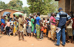 Tiêm chủng cho trẻ em chống lại bệnh sởi là một ưu tiên tại Cộng hòa Trung Phi (Central African Republic). Vào tháng 1/2014, hơn 115 000 trẻ em từ6 tháng đến 15 tuổi được tiêm phòng tại các trung tâm y tế trên cả nước do các nhân viên y tế quốc gia với sự hỗ trợ của WHO, Hội Chữ thập đỏ quốc tế (International Red Cross) và các đối tác (partners). Vào năm 2012, cứ 100 trẻ em sinh ra ở trong nước thì có đến 13 trẻ chết trước ngày sinh nhật thứ năm. Bệnh sởi có thể giết chếtđến 1 trong 25 trẻ em bị ảnh hưởng bởi căn bệnh này và vẫn còn là một vấn đề y tế công cộng tại Cộng hòa Trung Phi do đó người dân hoan nghênh chiến dịch tiêm phòng. Phóng sự ảnh này mô tả một chiến dịch tiêm phòng 3 ngày được thực hiên trong tháng 1/2014 từ một trung tâm y tế ở Guitangola, một huyện thuộc thủ đô Bangui của quốc gia Trung Phi này.