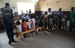 WHO làm việc suốt ngày đêm để bảo vệ cho trẻ em ở các vùng khó tiếp cận của huyện Bangui chống lại căn bệnh thời thơ ấu có khả năng chết người này.