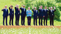 | Thủ tướng Đức Angela Merkel chụp ảnh cùng với các nhà lãnh đạo G7 trong một bức ảnh tại hội nghị G7 ở Schloss Elmau gần Garmisch-Partenkirchen, miền nam nước Đức, ngày 7/6/2015 |