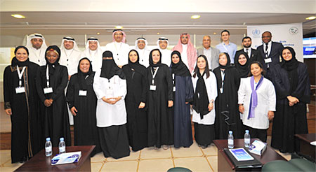 | Nhân viên của WHO cùng với những người tham gia hội thảo tại Ả rập Xê út (WHO/N. Caballero) |