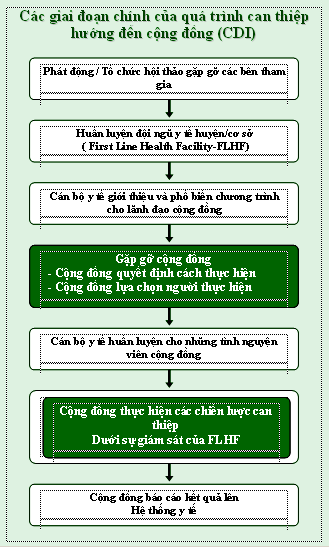 Sự tham gia của cộng đồng vào chương trình CDI được gọi là “tham gia kiến thiết”, trong đó mỗi thành viên trong cộng đồng đóng vai trò chủ động và trực tiếp trong việc đưa ra quyết định và phát triển dự án. Đây là một cấp độ tham gia khác với “tham gia bên lề” (tức các cộng đồng có ảnh hưởng rất hạn chế), hay “tham gia thứ yếu”, tức quyền quyết định lại do bên ngoài nắm giữ, trong khi cộng đồng vẫn có đủ khả năng xác định nhu cầu và tham gia vào các hoạt động. Thuật ngữ “tham gia kiến thiết” hàm ý “sự chuyển giao quyền điều hành và đưa ra quyết định, cho phép cộng đồng đóng vai trò chủ động hơn cùng với sự trợ giúp từ phía hệ thống y tế và các nhà tài trợ khác”.